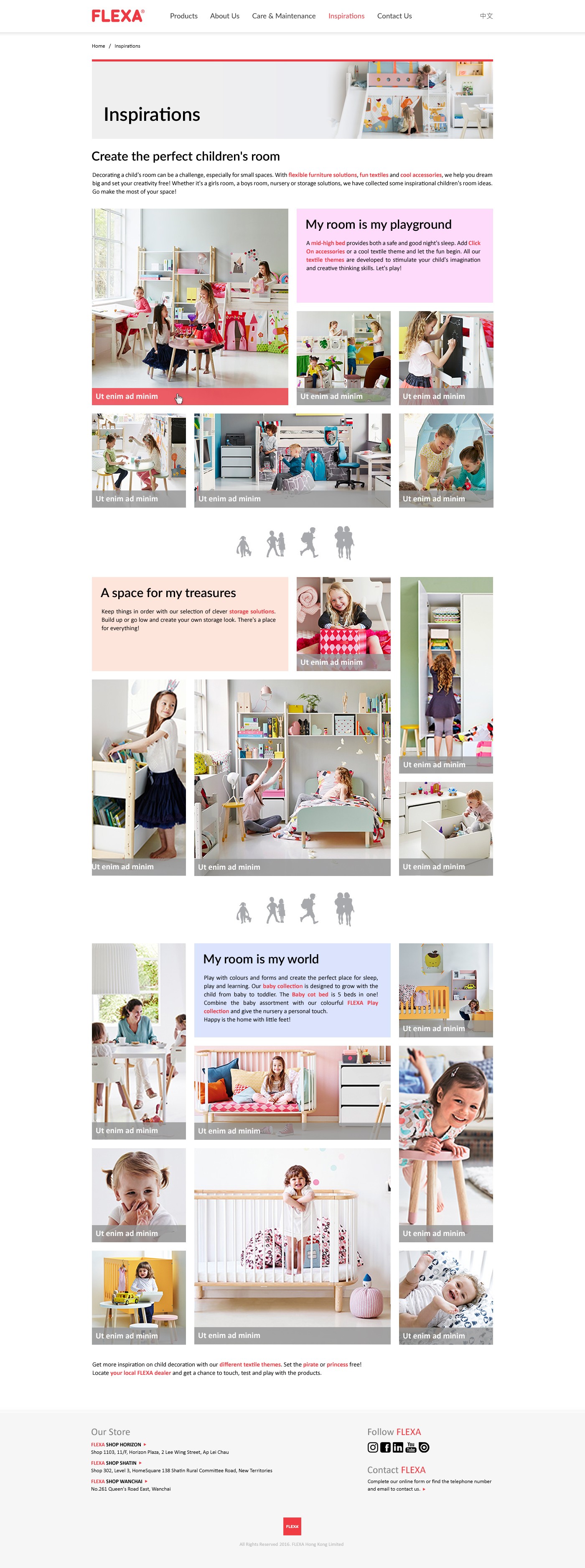 Inspirations: Curated a visually engaging section filled with design ideas and room layouts, encouraging parents to visualize how Flexa products can enhance their children’s spaces.